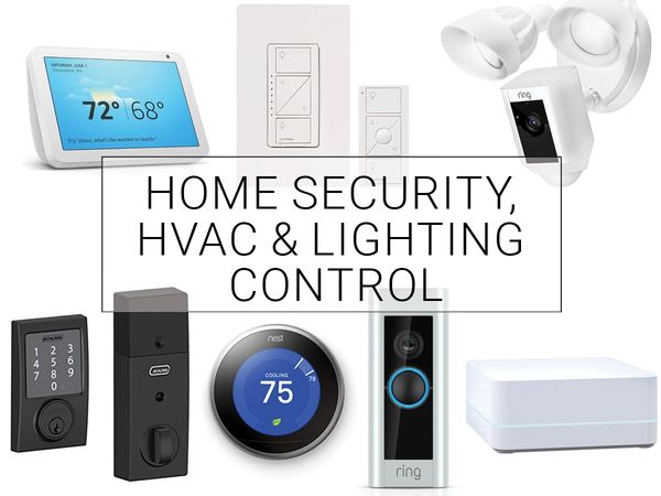 Stay protected and connected and add a level of climate and lighting controls. With the Ring Doorbell Pro, always know who is coming and going from your home. The Ring Floodlight Camera will not only monitor what is going on outside but will also motion-trigger lights to go on and deter intruders. The Schlage Smart Deadbolt will ensure you won't need your keys to get in - as well as allowing those you trust to enter with a special passcode that can be programmed for specific times. Enjoy full control of the temperature in your home and save energy with the Nest thermostat and monitor it all from your phone. Lutron Smart Dimmers offer lighting without buying smart bulbs. With the Lutron Bridge, tie it all together plus it can integrate with other smart home devices for expanded functionality. Amazon Echo Show will tie all of the items above in one visual space, but will also let you surf the internet, watch shows, and make call.